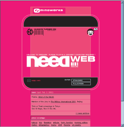 The site was also an early (2001) experiment with dynamic HTML (note the intro text — "ns" is Netscape!).