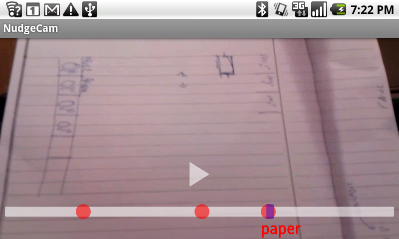 It can be difficult to shoot high quality video with your mobile phone. Some online tools, such as YouTube, can help correct common problems such as jitter and lighting in post processing. But of course these tools cannot add back content that you never shot in the first place. NudgeCam is a mobile application I built that helps users make sure they capture the content they mean to. NudgeCam provides real time feedback to make sure that faces stay in frame, audio quality is good, and panning motions are not too violent. The goal is to make sure that captured video content is good enough so that post processing methods can be effective.
